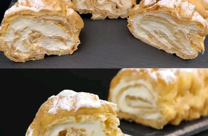 Benvenuti nel regno della pasticceria elegante ma sorprendentemente facile! Oggi prepariamo un dolce che unisce la leggerezza eterea della Pasta Choux (la base dei classici bignè) alla sofficità paradisiaca della Crema Chantilly. Il risultato è un tronchetto avvolgente, spolverato di zucchero a velo, un vero capolavoro visivo e gustativo. Preparatevi a stupire i vostri ospiti con questi “bignè giganti” arrotolati!