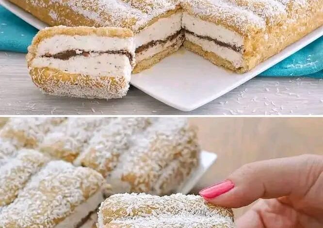 Sei alla ricerca del dolce perfetto che metta d’accordo tutti? Fermati qui! Ti presento la Torta Mattonella al Caffè e Cocco, il dessert “salva-vita” che non delude mai. Immagina la morbidezza dei savoiardi inzuppati nel caffè, uno strato generoso di crema vellutata e quel cuore di cioccolato che sorprende ad ogni morso. 🍫✨