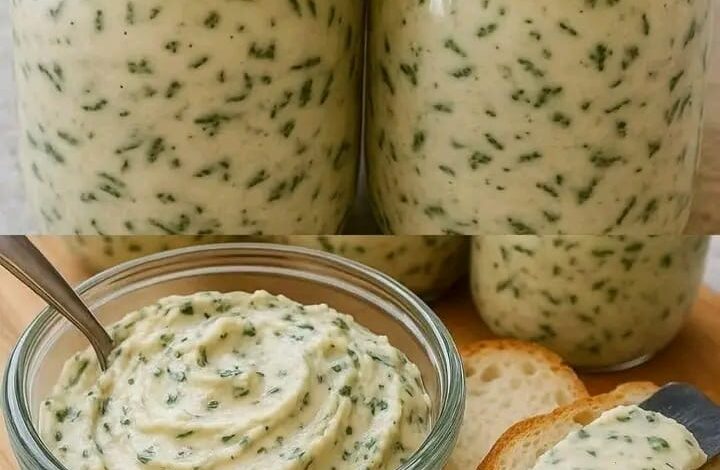 Questo non è un semplice condimento: è poesia spalmabile. Immaginate l’aglio che cuoce lentamente in forno diventando dolce come il miele, la freschezza pungente del prezzemolo e dell’erba cipollina, e la morbidezza di un burro montato a neve che si scioglie su una fetta di pane caldo e croccante. 🥖🔥