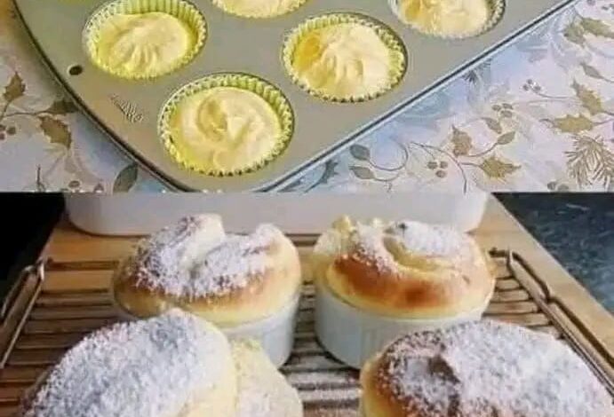 Hai mai desiderato mordere una nuvola? ☁️ Questi Soufflé Cupcakes non sono semplici muffin, sono un’opera d’arte della pasticceria leggera. Immagina un cuore cremoso al limone avvolto da un impasto così arioso che sembra quasi volare via dal pirottino. Sono perfetti per un brunch chic, una merenda raffinata o semplicemente quando vuoi coccolarti con qualcosa di unico. Preparati, perché una volta assaggiati, non potrai più tornare indietro! 🧁💛
