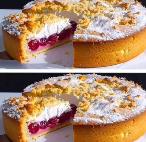 🍒🍰 L’Incanto della Torta di Ciliegie con Strato Cremoso e Briciole d’Oro!