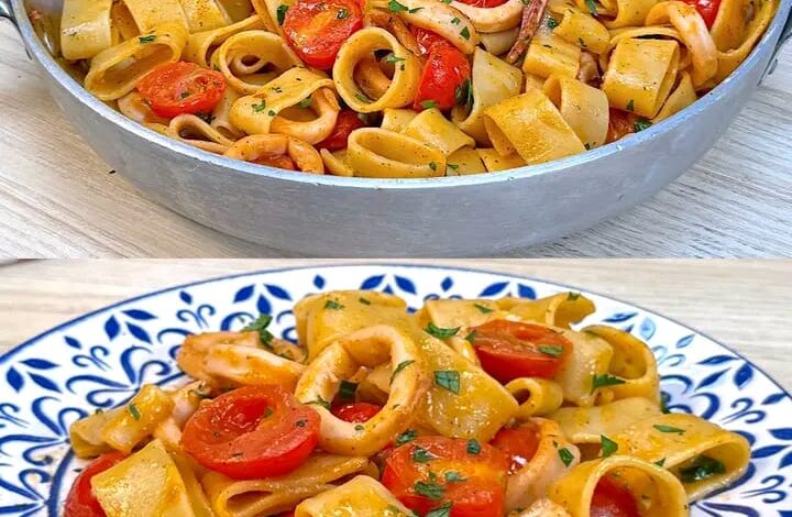 🍝 Calamarata con Calamari e Pomodorini: Un Viaggio di Sapore nel Mediterraneo! 🇮🇹