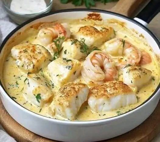 Hai mai desiderato quel piatto da ristorante stellato, quello dove il pesce รจ tenero come burro e la salsa รจ cosรฌ densa e profumata da creare dipendenza? Ecco, smetti di cercare. Questa padellata di mare รจ la definizione stessa di comfort food elegante. La dolcezza dei gamberi incontra la delicatezza del merluzzo, il tutto legato da una salsa al limone che brilla sotto le luci della tua cucina. ๐ธโจ