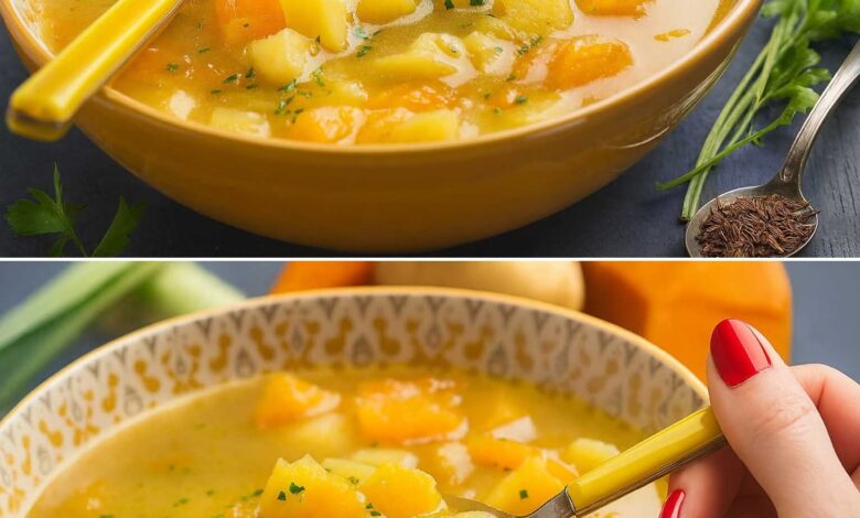 🎄 L’Abbraccio di Natale: Zuppa Dorata di Zucca e Patate al Profumo di Bosco 🥣✨