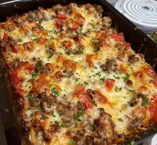 Avete presente quel momento in cui sfornate qualcosa e l’intero vicinato bussa alla porta chiedendo cosa sia questo profumo paradisiaco? Ecco, stiamo parlando di QUESTO. Una teglia che unisce la cremosità delle patate, la spinta decisa della salsiccia artigianale e la dolcezza dei peperoni arrostiti, il tutto sigillato da una coltre di formaggio dorato che crea una crosticina croccante da urlo. 🧀🤤