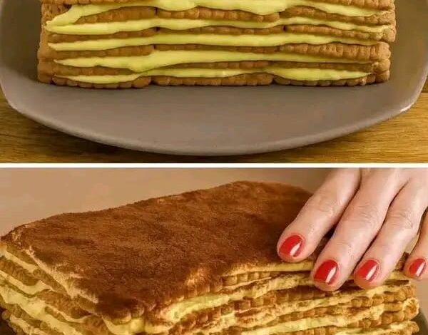 Prendi un piatto da portata rettangolare. Crea il primo strato di biscotti (ad esempio 3×4). Spalma generosamente uno strato della tua crema vellutata usando un cucchiaio o una spatola, livellando bene fino ai bordi. Ripeti l’operazione: biscotto, crema, biscotto, crema… Continua finché non finisci gli ingredienti o finché la tua torre non raggiunge un’altezza vertiginosa! 📏👑
