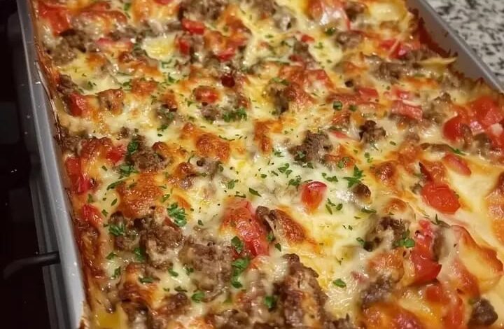 Esistono le lasagne e poi esiste QUESTA lasagna. Non è la classica versione della domenica, ma una variante rustica, ricca di carne, pomodorini freschi e una quantità di formaggio che sfida le leggi della fisica. 🧀🔥