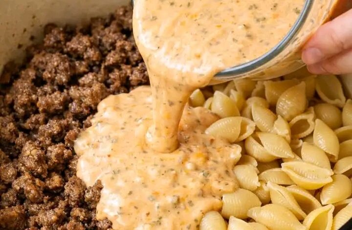 Questa non è una ricetta, è un’esperienza religiosa. Hai presente quella voglia matta di qualcosa di caldo, avvolgente e spaventosamente saporito? Ecco, guarda quella cascata di salsa dorata che abbraccia la carne rosolata e si infila dentro ogni singola conchiglia… è pura poesia culinaria. 🎨👑