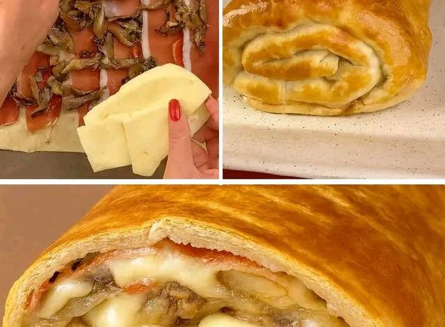 🧀 Lo Strudel Salato Perfetto: Rotolo di Sfoglia Filante con Prosciutto e Funghi che Sbalordisce! 🤩
