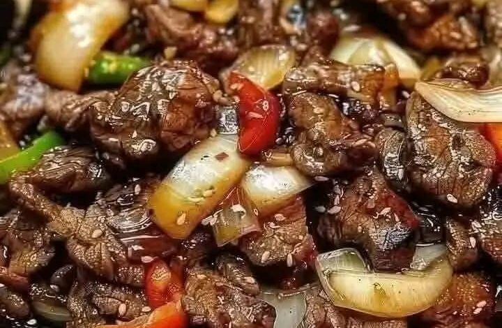 Rimetti il manzo nel wok insieme alle verdure. Versa sopra il mix di salse che hai preparato prima. La salsa inizierà a bollire e a ridursi istantaneamente grazie all’amido della carne, creando una glassa scura, densa e lucida che avvolge ogni singolo pezzetto.