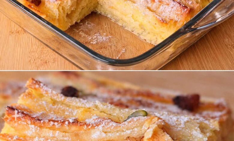 In una caraffa, sbatti le uova con lo zucchero rimasto, il latte (o la panna) e la scorza di limone. Versa questo composto piano piano sopra tutta la teglia. La crema scivolerà tra le pieghe della pasta fillo e le mele, creando una base morbida simile a un budino mentre la parte superiore diventerà croccantissima. 🥧