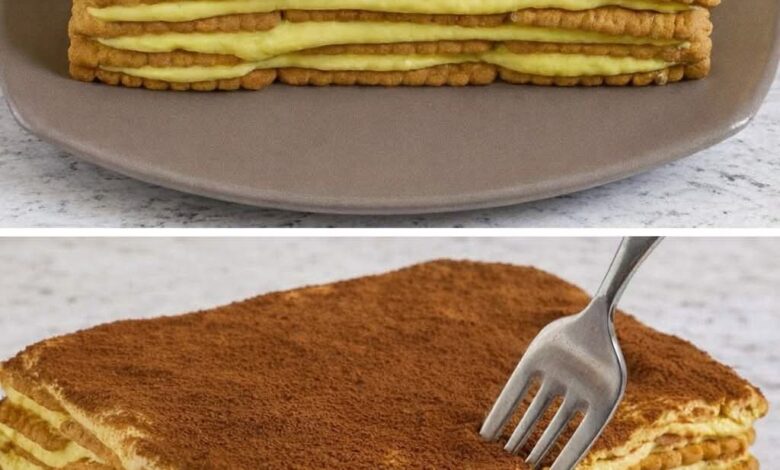 Prendi un piatto piano e inizia a disporre il primo strato di biscotti uno accanto all’altro. Copri con una dose generosa di crema e livella con un cucchiaio. Ripeti questa sequenza con pazienza: biscotti, crema, biscotti, crema. Punta ad almeno 5-6 strati per un effetto visivo mozzafiato al momento del taglio!