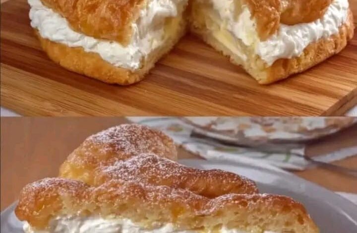 Hai presente quel momento in cui addenti qualcosa di così soffice, fresco e cremoso che ti sembra di toccare il cielo con un dito? Ecco, quella è esattamente la sensazione che regala questa torta. Una base di pasta choux leggera come l’aria, che racchiude un doppio strato peccaminoso di crema diplomatica e panna montata finissima. ☁️🍯