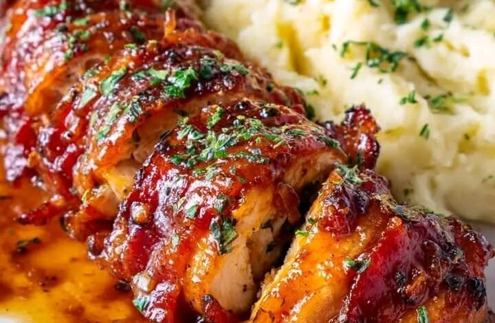 L’Esplosione di Gusto: Rotolo di Pollo Avvolto nel Bacon con Salsa BBQ Caramellata 🥓🍗✨