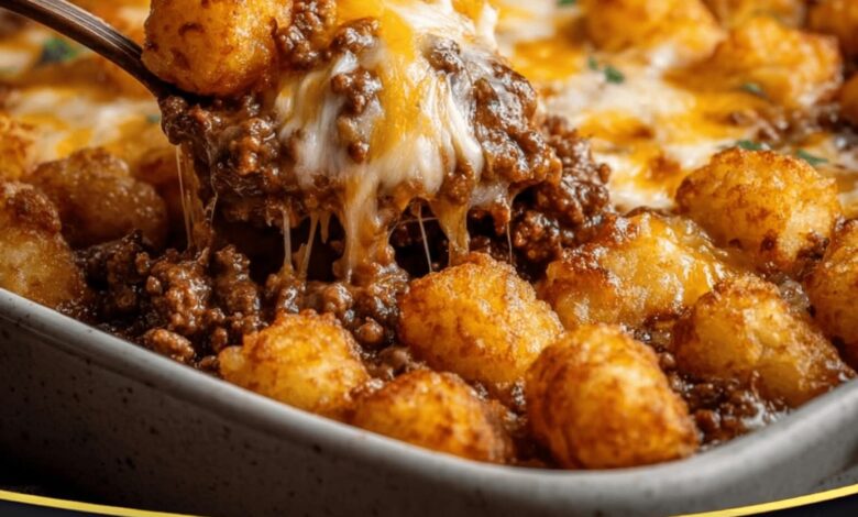 This casserole delivers layered textures and deep flavor—savory seasoned beef enveloped in creamy sauce, all topped with crispy, golden Tater Tots and gooey melted cheese. It’s the kind of dish that fills your kitchen with warmth and your plate with comfort.