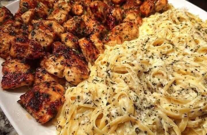 > “Creamy Garlic Butter Chicken & Linguine in Alfredo Sauce”