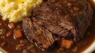 Certainly! Here’s a detailed, well-structured guide for your dish: “Slow-Cooked Pot Roast with Gravy Over Creamy Mashed Potatoes”, including every…