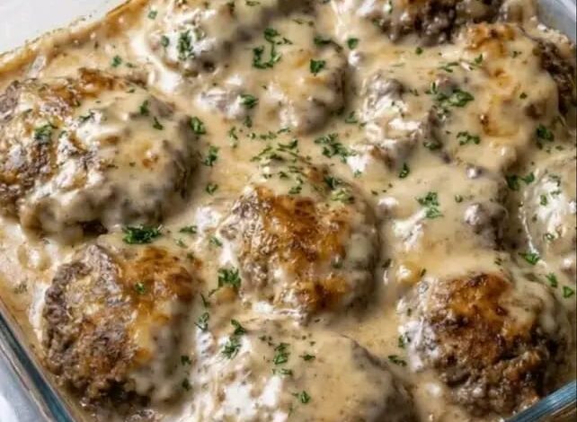 Ti presento le Salisbury Steak Meatballs: Polpette Imperiali in Crema di Funghi e Cipolle Dolce